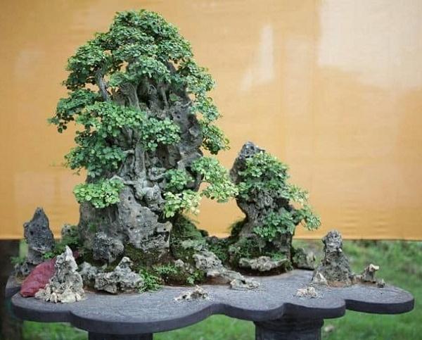 The leaves are simple, oval, tapering at the end, serrated edge, leathery, about 3-7 cm long and 3-5 cm wide. The leaves can shrink many times if routinely trimmed. Therefore, it is widely used as a bonsai and penjing.